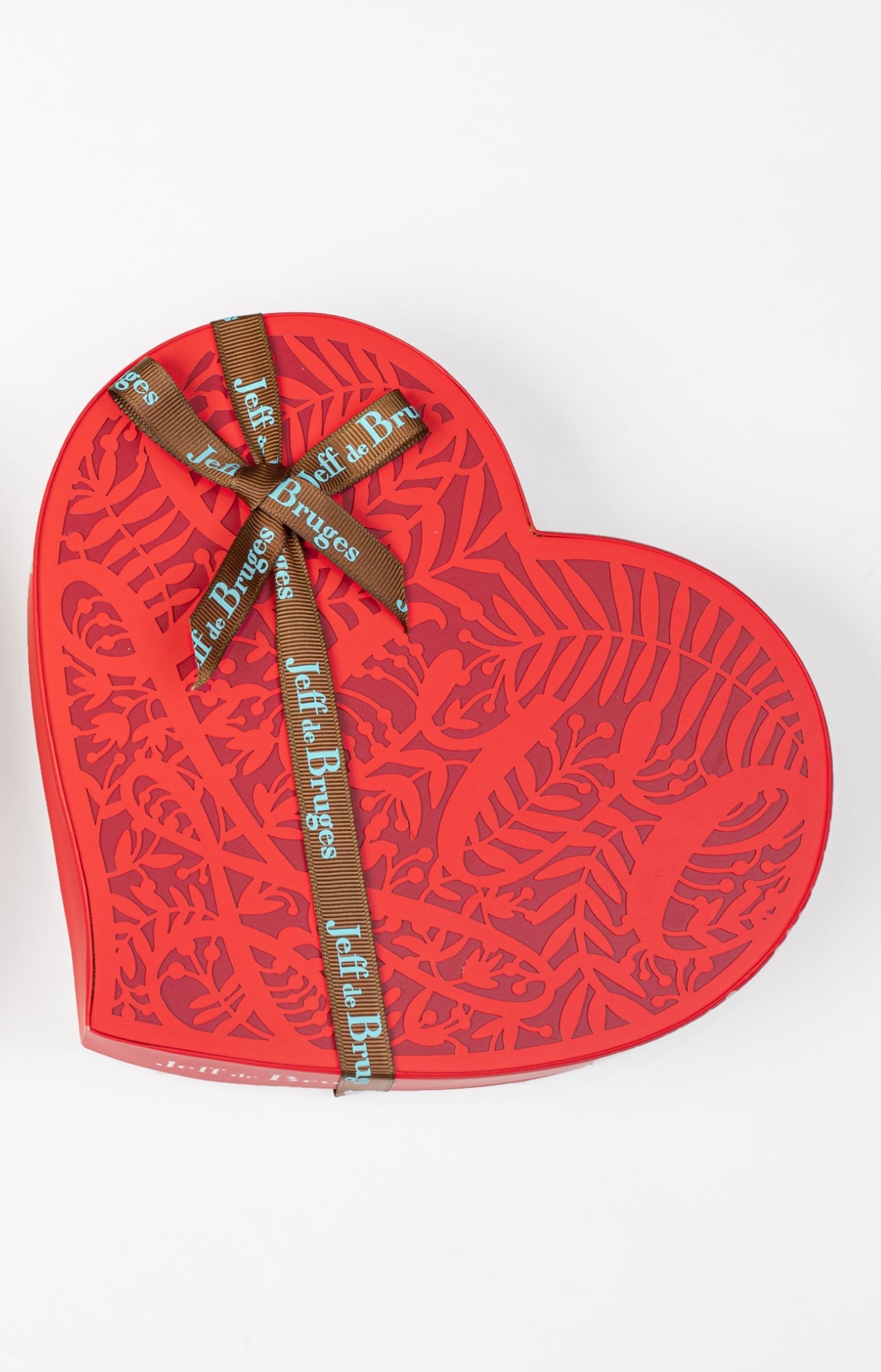 تشكيلة شوكولا طبيعية من جيف دي بروج الفرنسية معبأة في بوكس على شكل قلب